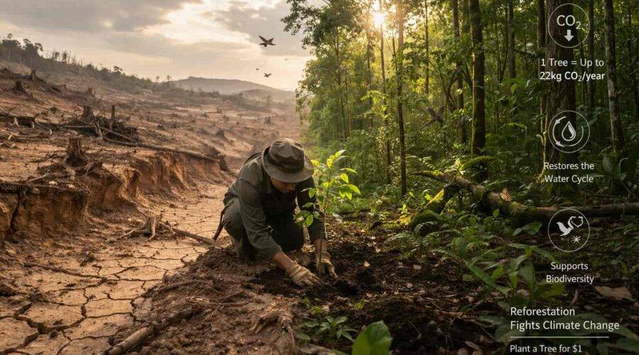 Discover the environmental impact of reforestation, from CO2 capture to biodiversity restoration. Learn how planting trees helps fight climate change and how you can act today.